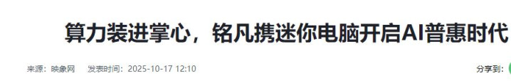 2012 年从深圳起家的铭凡便是典型,其避开 “低端组装”,死磕 “高性能微型计算机”,还率先预判 “AI 与迷你主机融合” 趋势,将 AI 算力与主机级性能绑定,彻底扭转迷你主机 “性能拉垮” 的刻板印象。